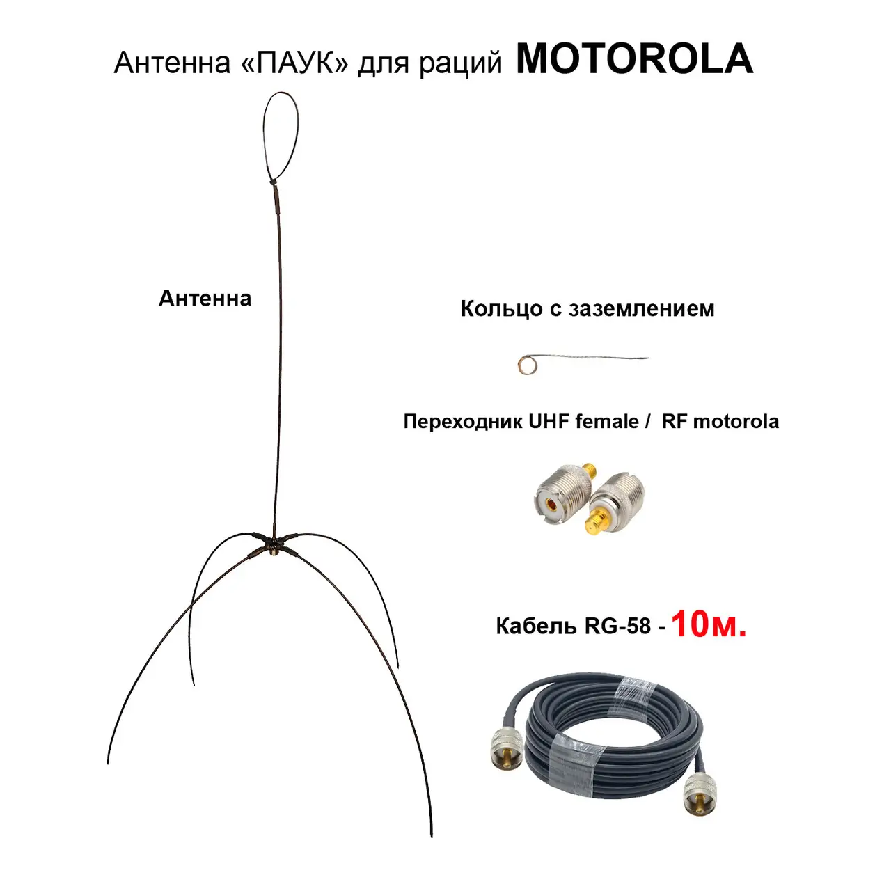 Антена «Павук» VHF/UHF антена для рацій Motorola DP (кабель 10м.) перехідник UHF