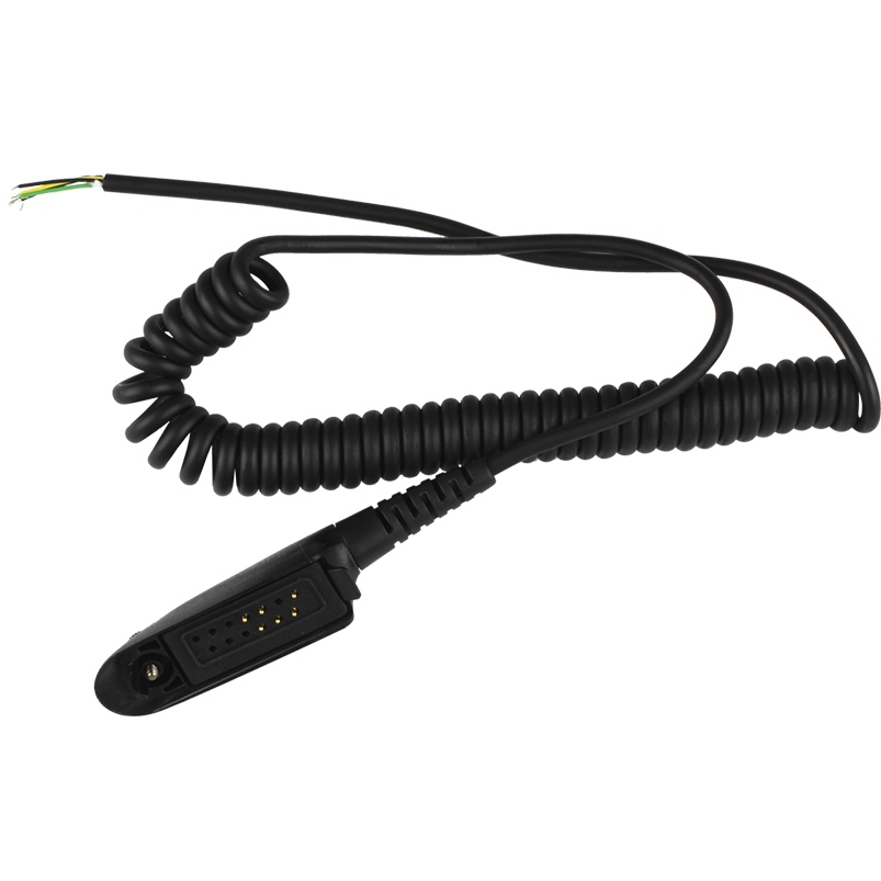 Аксесуар використовує посилений кручений провід чорного кольору, що забезпечує інтенсивну експлуатацію та стійкий до багаторазових вигинів. За рахунок крученої форми провід може розтягуватися до 2-х метрів. Провід є елементом, що відокремлюється. Це дозволяє оперативно проводити його заміну у разі виходу з ладу. Підключення дроту до радіостанції здійснюється джеком сумісним з роз’ємом до радіостанцій Motorola серії DP44хх, що розташований з одного боку.