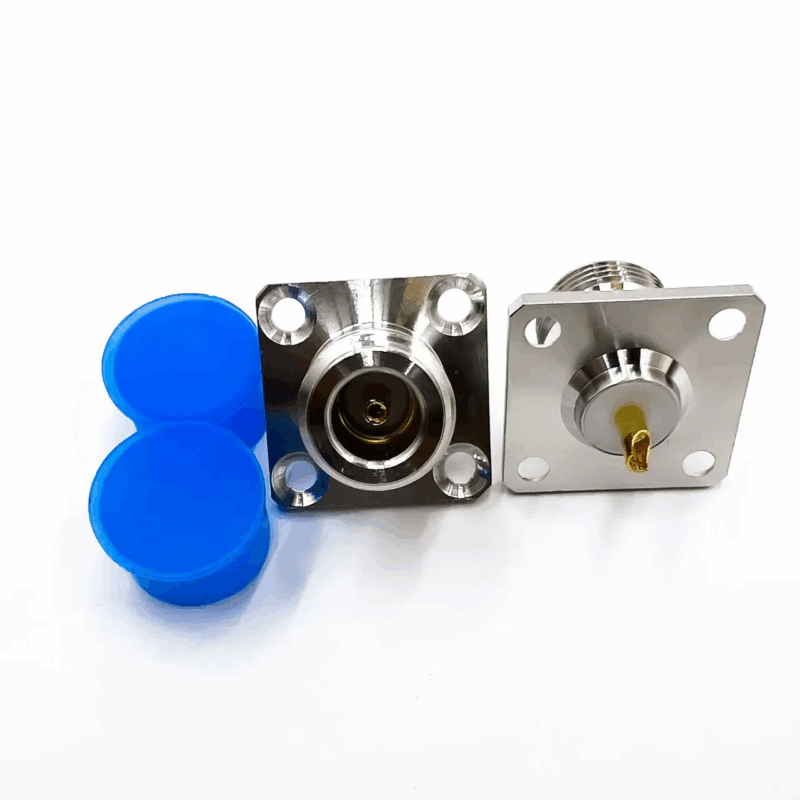 ВЧ штировий роз’єм N Type мама flange(кріплення на 4 отвори під гвинти з фіксацією, що пригвинчується)