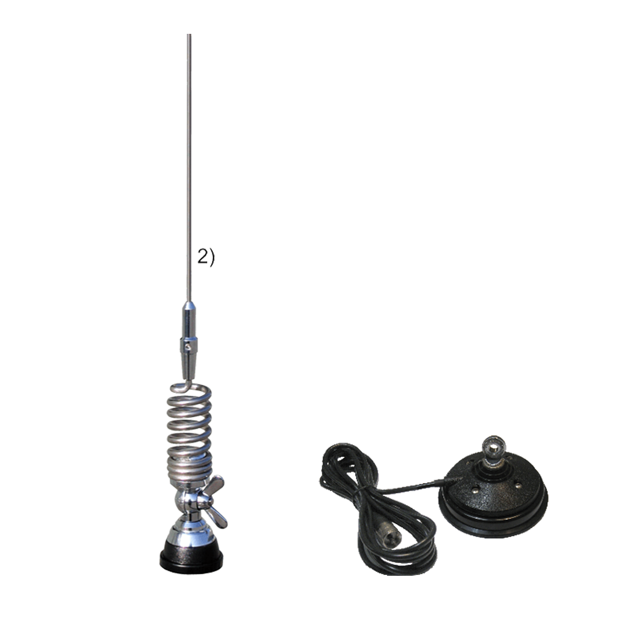 Автомобільна штирьова антена SMА 47/135 у комплекте з магнітною основою PM 125 S ø 125 мм та кабелем RG 58U довжиною 3,6 метрів і роз’ємом BNC або UHF, діапазон налаштування частот 135-175МНz.