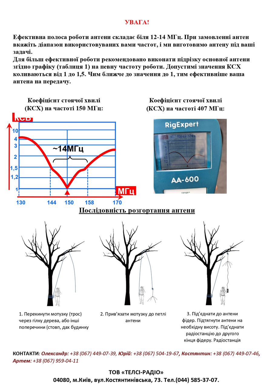 Ефективна смуга роботи антени становить близько 12–14 МГц. Під час замовлення антен вкажіть діапазон частот, які ви використовуєте, і ми виготовимо антену під ваші потреби.