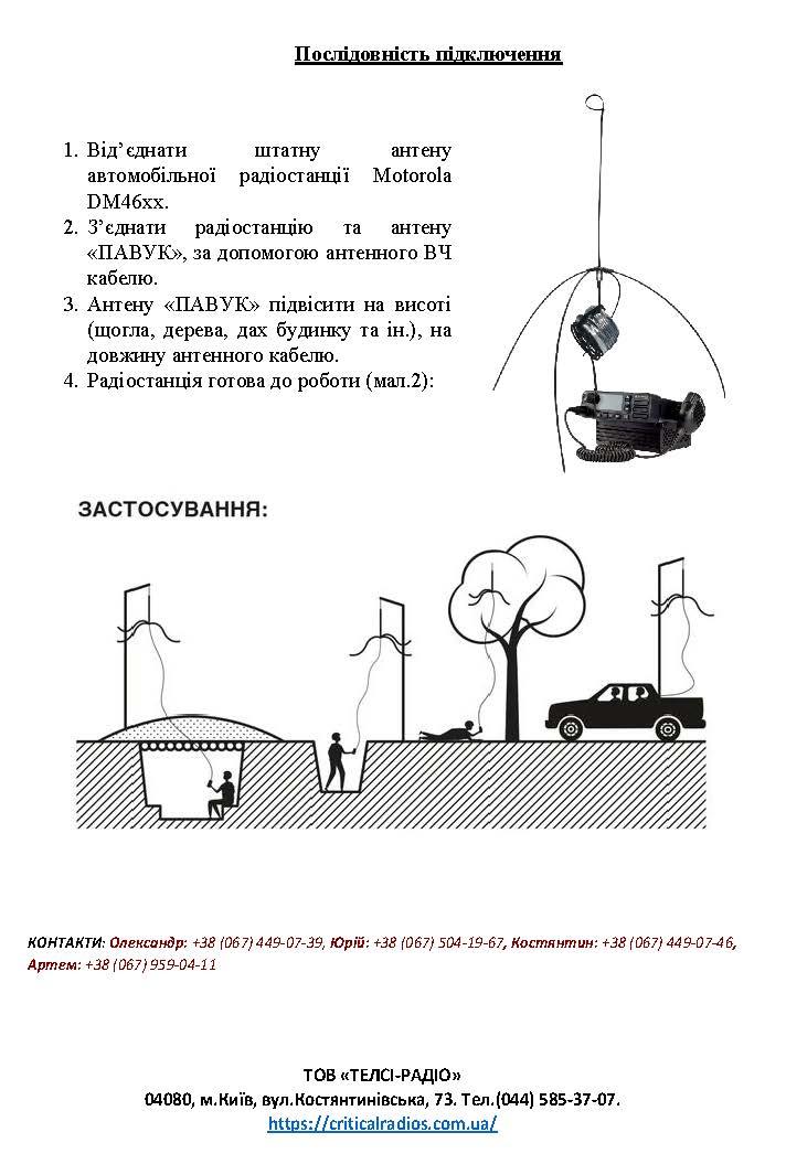 Виносна антена «ПАВУК» з довжиною вібраторів від 44 до 57 см (тип роз'єму на антені: UHF PL-259 (гніздо)).